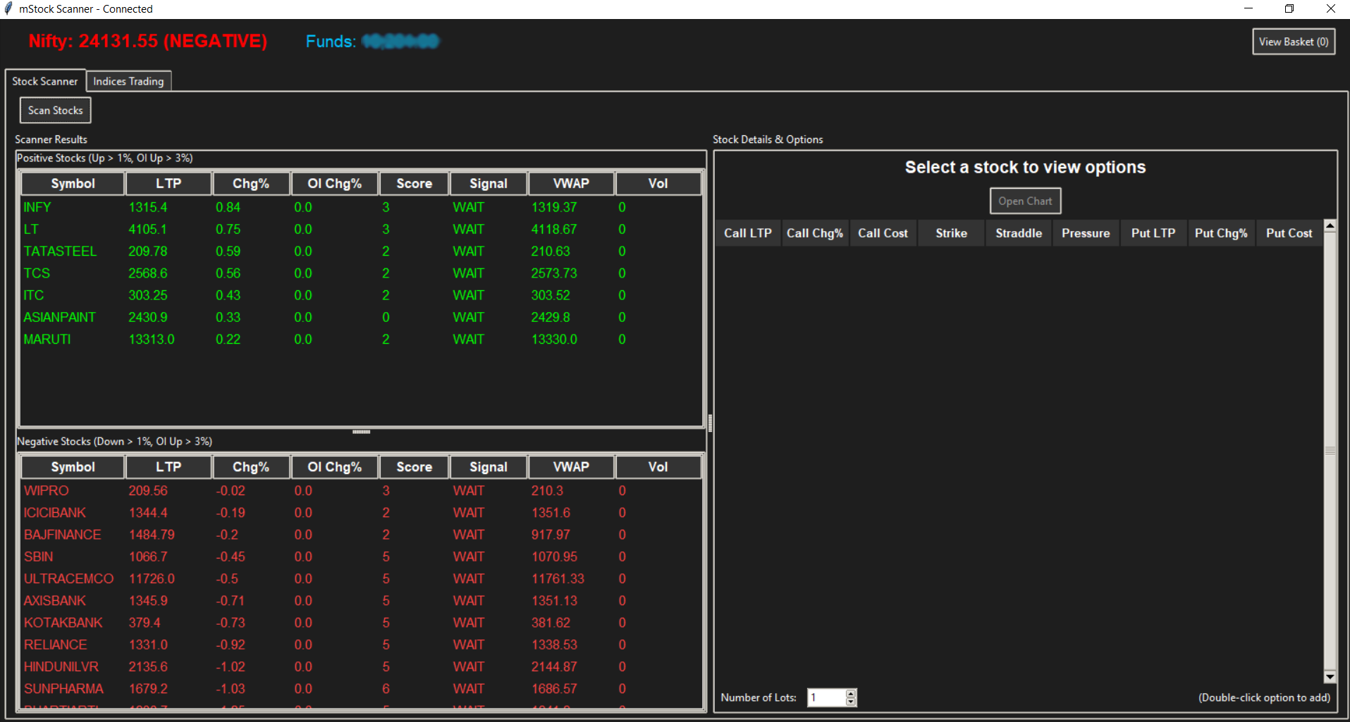 Custom BuiltBuilt a real-time scanner to identify high-probability stocks using price + OI signals.